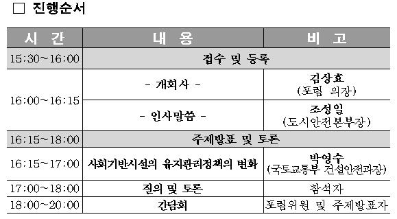 - 주 제 : 사회기반시설물의 유지관리 정책의 변화