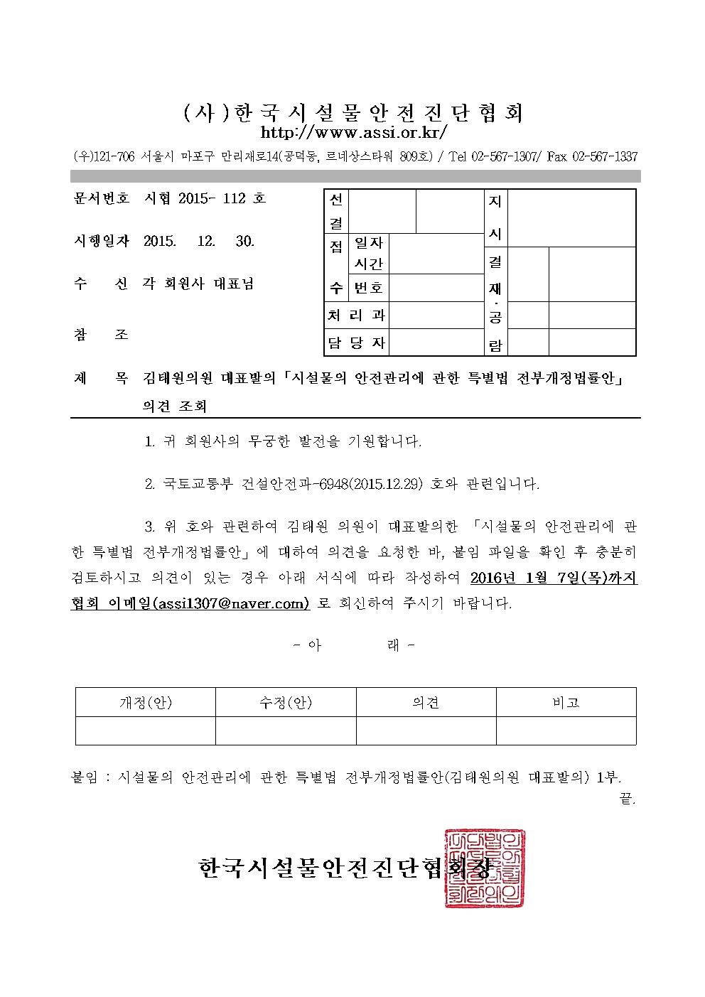 김태원의원 대표발의「시설물의 안전관리에 관한 특별법 전부개정법률안」의견 조회