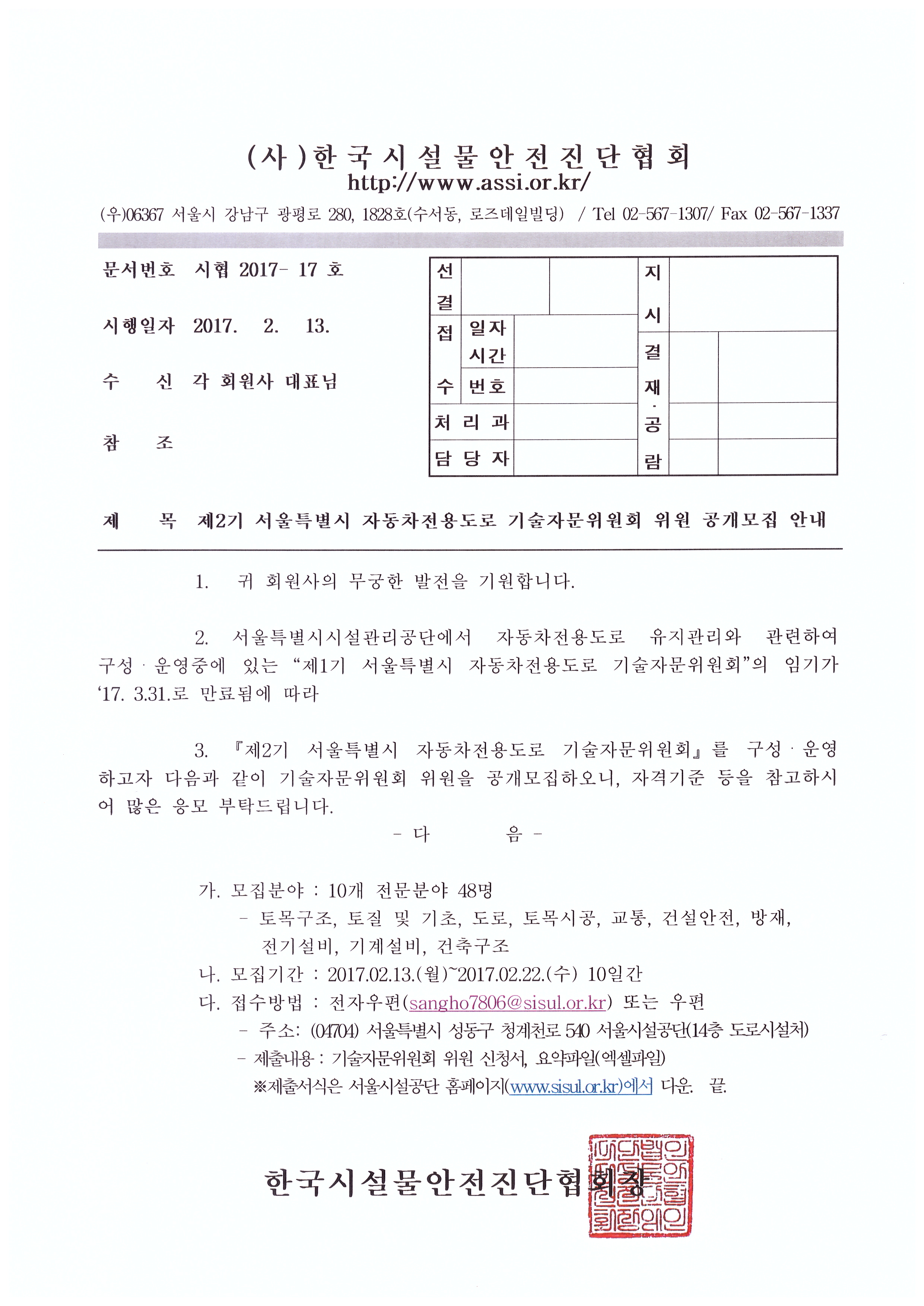 제2기 서울특별시 자동차전용도로 기술자문위원회 위원 공개모집 안내