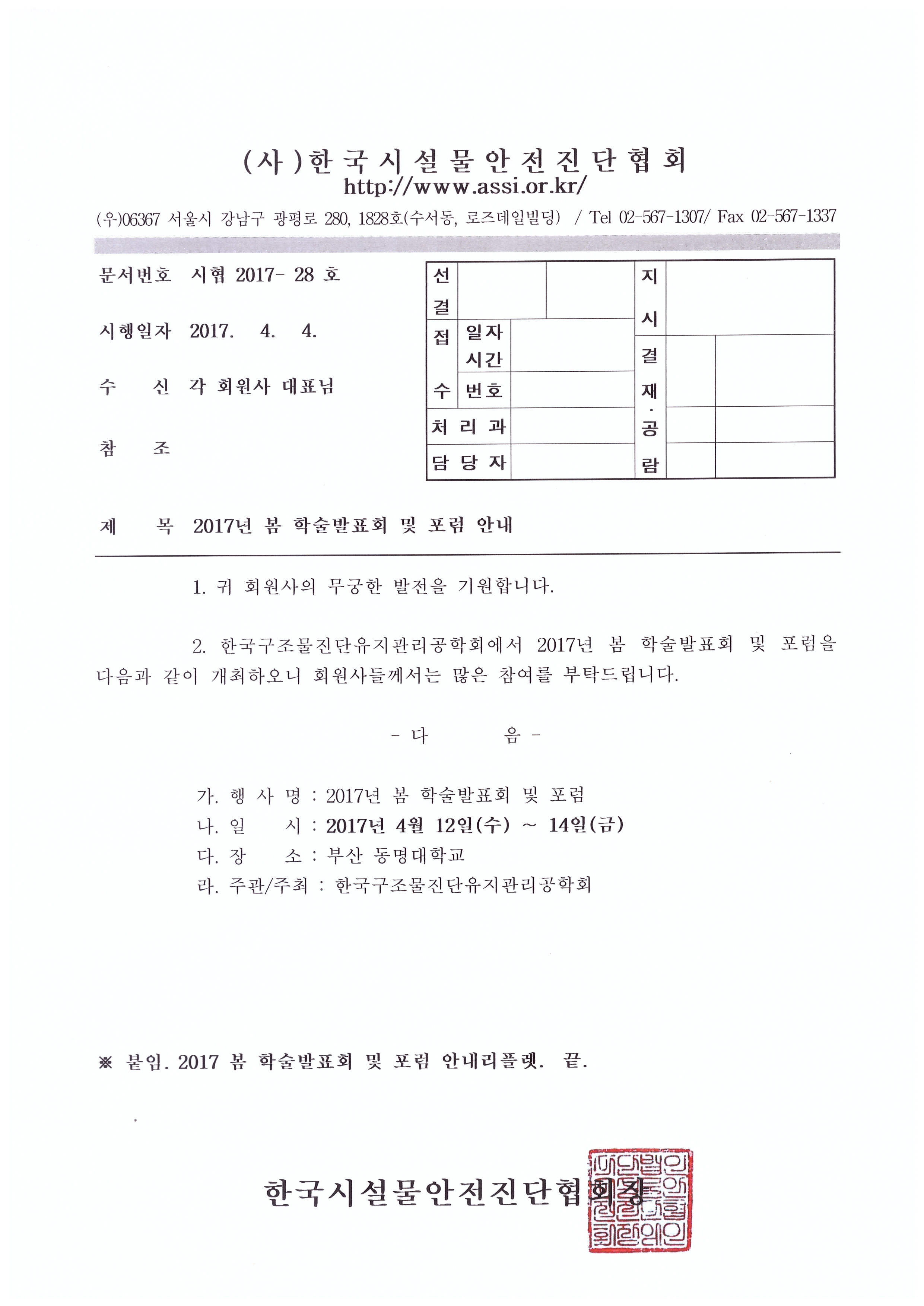 한국구조물진단유지관리공학회, 2017년 봄 학술발표회 및 포럼 안내