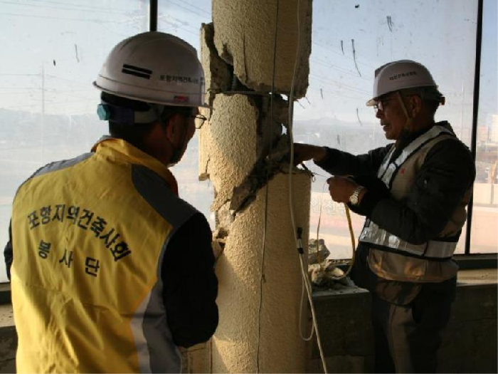대한건축사협회 소속 건축사들이 지난 2017년 11~12월 포항 지진 현장에서 복구 지원 활동을 벌이고 있다.
